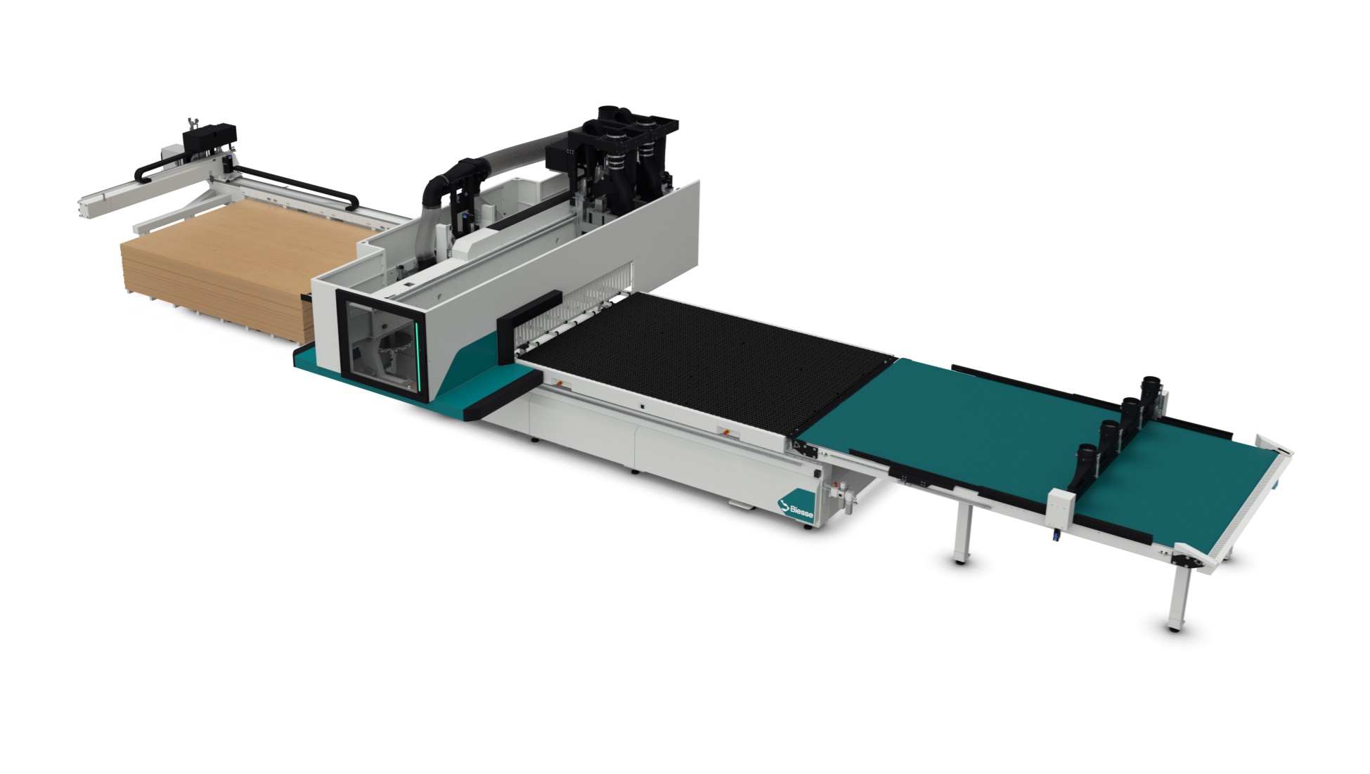 Rover Multi Pro N G kan udstyres med automatiske arbejdsborde som EPS, FPS eller XPS og tilbyder fuld multizone-opdeling, dynamisk zoneaktivering og præcis softwarestyret positionering. Værktøjsvekslere med op til 33 pladser og multifunktionsaggregater med sav, boring og fræsning gør maskinen til et ægte allround center – også ved komplekse opgaver og varierende emnestørrelser.